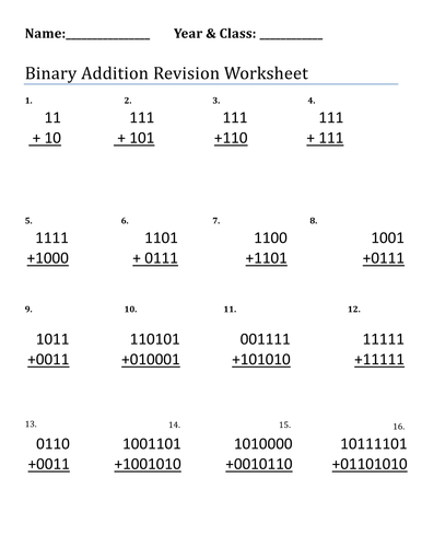 Adding And Subtracting Binary Numbers Binary Multiplication Worksheet With Answers Worksheets Addition Puzzles For 1st Grade Mathematics Word Problems For Grade 6 Linear Equations Worksheets Year 10 Free Word Problem Help 3rd